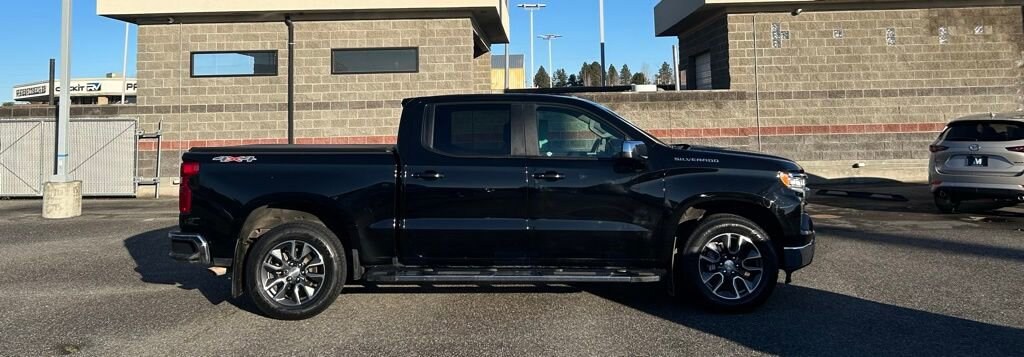 Recent Arrival! 2023 Chevrolet Silverado 1500 LT Certified.2023 Chevrolet Silverado 1500 LT 4WD 8-Speed Automatic 2.7L Turbo Black Chevrolet Certified Pre-Owned Certified, 8-Speed Automatic, 4WD, Jet Black w/Leather-Appointed Front Seat Trim, 10-Way Power Driver Seat w/Lumbar, 120-Volt Bed Mounted Power Outlet, 120-Volt Instrument Panel Power Outlet, Convenience Package, Dual Rear USB Ports (Charge Only), Dual-Zone Automatic Climate Control, Heated Driver & Front Outboard Passenger Seats, Heated Steering Wheel, Keyless Open & Start, Wrapped Steering Wheel, 12.3 Multicolor Reconfigurable Digital Display, 3.42 Rear Axle Ratio, 4-Wheel Disc Brakes, 40/20/40 Front Split-Bench Seat, 6 Speakers, 6-Speaker Audio System, ABS brakes, Air Conditioning, All-Star Edition, Alloy wheels, AM/FM radio: SiriusXM with 360L, Apple CarPlay/Android Auto, Auto High-beam Headlights, Auto-Locking Rear Differential, Automatic Emergency Braking, Automatic temperature control, Bluetooth® For Phone, Brake assist, Bumpers: chrome, Chevrolet Connected Access Capable, Chrome Mirror Caps, Cloth Seat Trim, Color-Keyed Carpeting Floor Covering, Compass, Deep-Tinted Glass, Delay-off headlights, Driver door bin, Driver vanity mirror, Dual front impact airbags, Dual front side impact airbags, Electric Rear-Window Defogger, Electrical Steering Column Lock, Electronic Cruise Control, Electronic Stability Control, Engine Block Heater, Following Distance Indicator, Forward Collision Alert, Front anti-roll bar, Front Center Armrest w/Storage, Front dual zone A/C, Front Frame-Mounted Black Recovery Hooks, Front Pedestrian Braking, Front reading lights, Front wheel independent suspension, Fully automatic headlights, HD Rear Vision Camera, Heated door mirrors, Heated front seats, Heated steering wheel, High Capacity Suspension Package, Hitch Guidance, Illuminated entry, IntelliBeam Automatic High Beam On/Off, Lane Keep Assist w/Lane Departure Warning, LED Cargo Area Lighting, Low tire pressure warning, Not Equipped w/Steering Column Lock, Occupant sensing airbag, OnStar & Chevrolet Connected Services Capable, Outside temperature display, Overhead airbag, Overhead console, Panic alarm, Passenger door bin, Passenger vanity mirror, Power door mirrors, Power driver seat, Power Front Windows w/Driver Express Up/Down, Power Front Windows w/Passenger Express Down, Power Rear Windows w/Express Down, Power steering, Power windows, Premium audio system: Chevrolet Infotainment 3 Premium, Radio data system, Radio: Chevrolet Infotainment 3 Premium System, Rear 60/40 Folding Bench Seat (Folds Up), Rear reading lights, Rear step bumper, Rear window defroster, Remote keyless entry, Remote Vehicle Starter System, Security system, SiriusXM w/360L, Speed control, Speed-sensing steering, Split folding rear seat, Standard Suspension Package, Steering Wheel Audio Controls, Steering wheel mounted audio controls, Tachometer, Telescoping steering wheel, Theft Deterrent System (Unauthorized Entry), Tilt steering wheel, Traction control, Trailering Package, Trip computer, Variably intermittent wipers, Voltmeter, Wheels: 18 x 8.5 Bright Silver Painted Aluminum, Wheels: 20 x 9 Painted Aluminum, Wi-Fi Hot Spot Capable, Wireless Phone Projection, 8-Speed Automatic, 4WD, Jet Black w/Leather-Appointed Front Seat Trim, 10-Way Power Driver Seat w/Lumbar, 120-Volt Bed Mounted Power Outlet, 120-Volt Instrument Panel Power Outlet, Convenience Package, Dual Rear USB Ports (Charge Only), Dual-Zone Automatic Climate Control, Heated Driver & Front Outboard Passenger Seats, Heated Steering Wheel, Keyless Open & Start, Wrapped Steering Wheel.Chevrolet Certified Pre-Owned Details:* 172 Point Inspection* 24 months/24,000 miles (whichever comes first) Certified Pre-Owned Scheduled Maintenance Plan and 3 days/150 miles (whichever comes first) Vehicle Exchange Program. SiriusXM 3-month trial subscription.* Powertrain Limited Warranty: 72 Month/100,000 Mile (whichever comes fi
