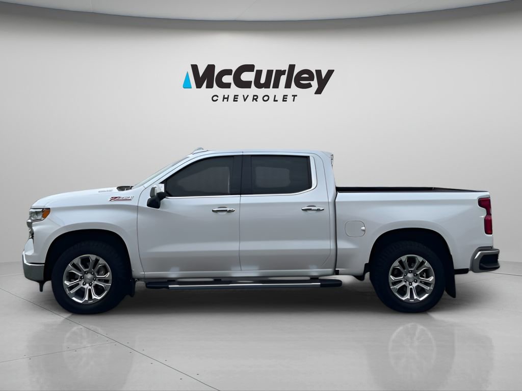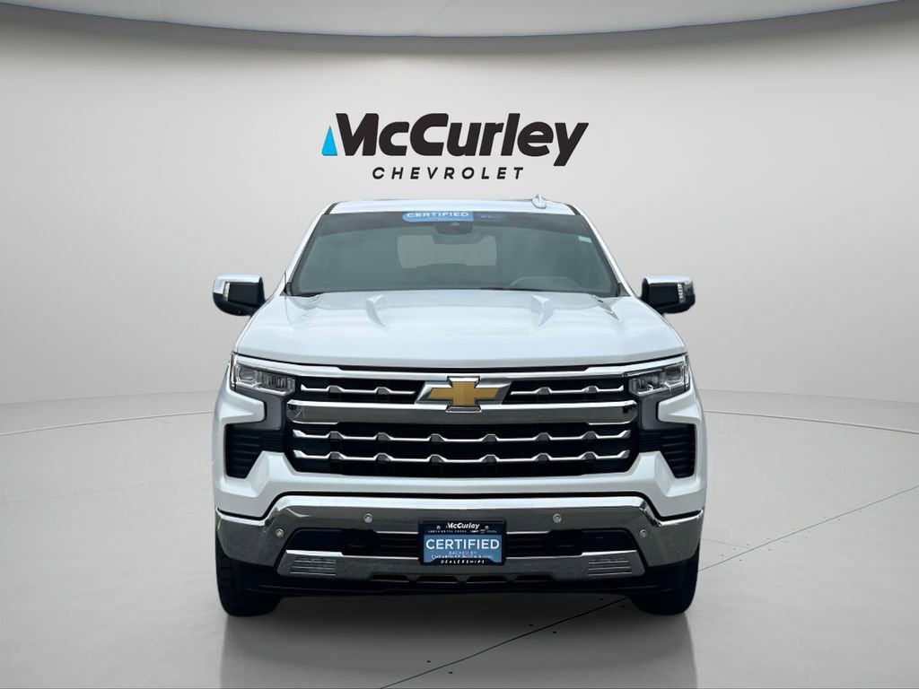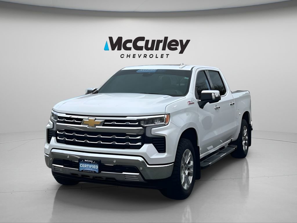 2025 Chevrolet Silverado 1500 LTZ 4WD 10-Speed Automatic 3.0L I6 Crystal White Tricoat Chevrolet Certified Pre-Owned Certified, 10-Speed Automatic, 4WD, Gideon/Very Dark Atmosphere Leather, 10-Way Power Driver Seat w/Lumbar, 10-Way Power Passenger Seat Adjuster w/Lumbar, 12.3 Multicolor Reconfigurable Digital Display, 120-Volt Bed Mounted Power Outlet, 120-Volt Interior Power Outlet, 2 USB Data Ports, 2nd Row Heated Outboard Seats, Adaptive Cruise Control, Auto-Dimming Inside Rear-View Mirror, Auto-Locking Rear Differential, Bluetooth® For Phone, Chrome Mirror Caps, Color-Keyed Carpeting Floor Covering, Deep-Tinted Glass, Driver Memory, Dual Exhaust w/Black Exhaust Tips, Dual Rear USB Ports (Charge Only), Electric Rear-Window Defogger, Electronic Cruise Control, Floor Mounted Center Console, Front Frame-Mounted Black Recovery Hooks, Front LED Fog Lamps, Front Rain-Sensing Wipers, Front Rubberized Vinyl Floor Mats, HD Surround Vision, Heated Driver & Front Outboard Passenger Seats, Heated Steering Wheel, Heavy-Duty Air Filter, High Capacity Suspension Package, Hill Descent Control, Hitch Guidance, Hitch Guidance w/Hitch View, In-Vehicle Trailering System App, Integrated Trailer Brake Controller, Keyless Open & Start, LED Cargo Area Lighting, LTZ Convenience Package, LTZ Convenience Package II, LTZ Plus Package, LTZ Premium Package, Off-Road Suspension, OnStar Services Capable, Outside Heated Power-Adjustable Mirrors, Perimeter Lighting, Power Front Passenger Windows w/Express Up/Down, Power Front Windows w/Driver Express Up/Down, Power Rear Windows w/Express Down, Power Sliding Rear Window w/Rear Defogger, Power Sunroof, Power Tailgate, Power Tilt & Telescoping Steering Column, Preferred Equipment Group 1LZ, Premium Bose 7-Speaker Sound System, Rear Cross Traffic Braking, Rear Pedestrian Alert, Rear Rubberized-Vinyl Floor Mats, Rear Wheelhouse Liners, Remote Vehicle Starter System, Safety Alert Seat, Safety Package, SiriusXM w/360L Trial Subscription, Standard Tailgate, Steering Wheel Audio Controls, Teen Driver, Theft Deterrent System (Unauthorized Entry), Tire Pressure Monitoring System, Trailer Camera Provisions, Trailer Side Blind Zone Alert, Trailering Package, Ultrasonic Front & Rear Park Assist, Universal Home Remote, Up-Level Rear Seat w/Storage Package, Ventilated Driver & Front Passenger Seats, Wi-Fi Hot Spot Capable, Wireless Charging, Wrapped Steering Wheel, Z71 Off-Road Package, 170 Amp Alternator, 220 Amp Alternator, 3.23 Rear Axle Ratio, 4-Wheel Disc Brakes, 6 Rectangular Chrome Tubular Assist Steps (LPO), 7 Speakers, ABS brakes, Air Conditioning, Alloy wheels, AM/FM radio: SiriusXM with 360L, Apple CarPlay/Android Auto, Auto High-beam Headlights, Auto-dimming door mirrors, Auto-dimming Rear-View mirror, Automatic Emergency Braking, Automatic temperature control, Brake assist, Bumpers: chrome, Chevytec Spray-On Black Bedliner, Compass, Delay-off headlights, Driver door bin, Driver vanity mirror, Dual Exhaust w/Polished Outlets, Dual front impact airbags, Dual front side impact airbags, Electronic Stability Control, Electronic Transmission Range Selector Shifter, Emergency communication system: OnStar, Engine Block Heater, Following Distance Indicator, Forward Collision Alert, Front anti-roll bar, Front Bucket Seats, Front Center Armrest, Front dual zone A/C, Front fog lights, Front Pedestrian Braking, Front reading lights, Front wheel independent suspension, Fully automatic headlights, Heated door mirrors, Heated front seats, Heated steering wheel, Illuminated entry, IntelliBeam Automatic High Beam On/Off, Lane Keep Assist w/Lane Departure Warning, Low tire pressure warning, Memory seat, Occupant sensing airbag, Outside temperature display, Overhead airbag, Overhead console, Panic alarm, Passenger door bin, Passenger vanity mirror, Perforated Leather-Appointed Front Seat Trim, Power door mirrors, Power driver