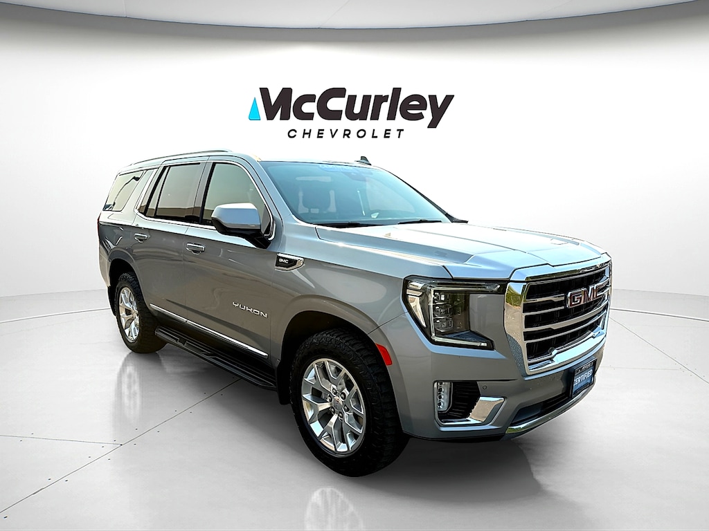 Introducing the 2023 GMC Yukon SLT 4WD - a perfect blend of luxury and capability. Dressed in an elegant Sterling Metallic exterior, this powerful SUV commands attention on every journey. The spacious Jet Black interior, designed for comfort and style, offers ample room for up to eight passengers, ensuring that everyone travels in comfort. Under the hood, the Yukon SLT is equipped with a robust 5.3-liter engine, delivering a strong performance that excels in both power and efficiency. Coupled with advanced 4WD capabilities, this vehicle is ready to tackle any terrain, making it the ideal companion for family adventures and daily commutes alike. The Yukon SLT is also loaded with cutting-edge technology and safety features, providing a seamless driving experience while keeping you and your passengers secure. With premium materials and thoughtful design elements throughout the cabin, this SUV creates an inviting atmosphere that makes every drive enjoyable. Experience the perfect combination of sophistication, performance, and versatility with the 2023 GMC Yukon SLT 4WD. Don't miss out on the opportunity to elevate your driving experience - inquire today!