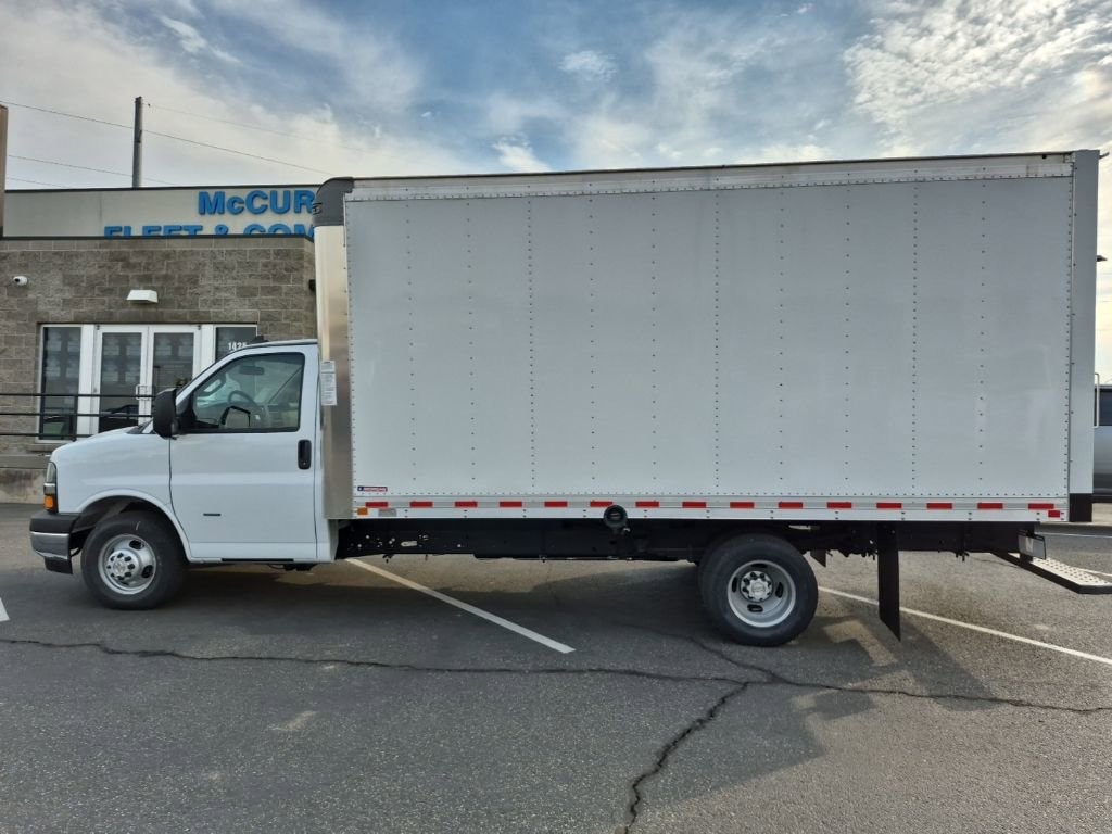 Summit White 2024 Chevrolet Express 3500 Work Van Cutaway RWD 8-Speed Automatic 6.6L V8 2 Speakers, 3.73 Rear Axle Ratio, 4-Wheel Disc Brakes, ABS brakes, Air Conditioning, AM/FM radio, Chrome Appearance Package, Chrome Grille, Cruise Control, Delay-off headlights, Driver & Front Passenger High-Back Bucket Seats, Driver Convenience Package, Driver door bin, Driver's Seat Mounted Armrest, Dual front impact airbags, Dual Rear Wheel Configuration, Dual rear wheels, Electronic Stability Control, Emergency communication system: OnStar and Chevrolet connected services capable, Engine Cover Console w/Swing-Out Storage Bin, Front anti-roll bar, Front Bucket Seats, Front Chrome Bumper w/Step-Pad, Front wheel independent suspension, Fully automatic headlights, Heavy-Duty Locking Rear Differential, Inside Rearview Mirror w/Rr Vision Camera Display, Manual Day/Night Inside Rear-View Mirror, Occupant sensing airbag, Passenger cancellable airbag, Passenger door bin, Passenger seat mounted armrest, Power Convenience Package, Power Door Locks w/Lock-Out Protection, Power steering, Power Windows, Preferred Equipment Group 1WT, Radio: AM/FM Stereo w/MP3 Player & Digital Clock, Rear Vision Camera, Reclining High-Back Bucket Seats w/Inboard Armrests, Remote Keyless Entry, Tachometer, Theft Alarm Notification, Tilt Steering Wheel, Traction control, Trip computer, Variably intermittent wipers, Vinyl Seat Trim, Voltmeter, Wheels: 16 x 6.5 8-Lug Painted Steel HD (6), Wide-Stance Sail Panel Mounted Outside Mirrors.