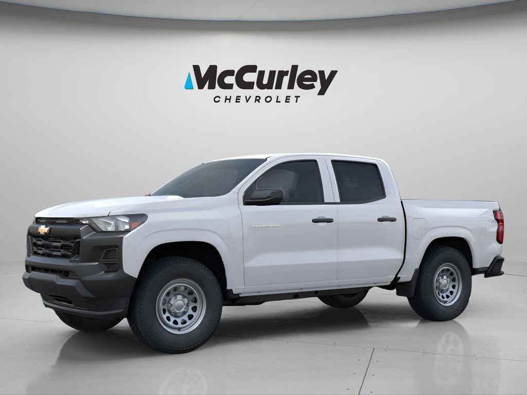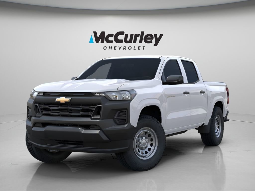 Summit White 2025 Chevrolet Colorado Work Truck RWD 8-Speed Automatic 2.7L I4 Turbocharged DOHC 16V LEV3-ULEV50 310hp 220 Amp Alternator, 3.42 Rear Axle Ratio, 4-Way Manual Passenger Seat Adjuster, 4-Wheel Disc Brakes, 6 Speakers, 6-Speaker Audio System Feature, 6-Way Manual Driver Seat Adjuster, ABS brakes, Advanced Trailering Package, Air Conditioning, AM/FM radio: SiriusXM, Apple CarPlay/Android Auto, Auto High-beam Headlights, Automatic Emergency Braking, Automatic Locking Rear Differential, Black Spray-On Bedliner, Blind Zone Steering Assist w/Trailering, Brake assist, Chevy Safety Assist, Cloth Seat Trim, Delay-off headlights, Driver door bin, Driver vanity mirror, Dual front impact airbags, Dual front side impact airbags, Electronic Stability Control, Emergency communication system: OnStar, Following Distance Indicator, Forward Collision Alert, Front anti-roll bar, Front Bucket Seats, Front Center Armrest, Front License Plate Kit, Front Pedestrian & Bicyclist Braking, Front wheel independent suspension, Heated door mirrors, Heavy-Duty Trailering Package, Integrated Trailer Brake Controller, IntelliBeam Automatic High Beam On/Off, Lane Keep Assist w/Lane Departure Warning, Low tire pressure warning, Navigation System, Occupant sensing airbag, Overhead airbag, Panic alarm, Passenger door bin, Passenger vanity mirror, Power door mirrors, Power steering, Power windows, Preferred Equipment Group 2WT, Radio data system, Radio: 11.3 Diagonal Advanced Color LCD Display, Rear step bumper, Rear window defroster, Remote keyless entry, Security system, SiriusXM Trial Subscription, Speed control, Speed-sensing steering, Split folding rear seat, Steering Wheel Mounted Audio Controls, Steering wheel mounted audio controls, Tachometer, Tilt steering wheel, Traction control, Trailering App, Trip computer, Variably intermittent wipers, Wheels: 17 x 8 Ultra Silver Metallic Steel, Wireless Phone Projection.