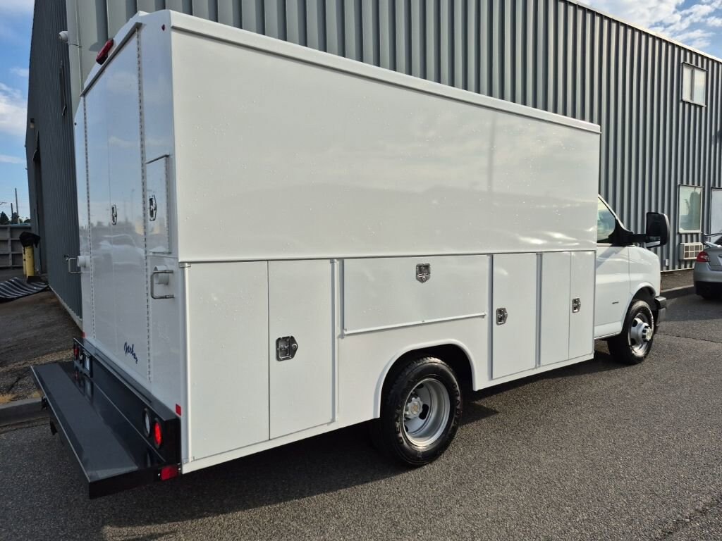 Summit White 2025 Chevrolet Express 3500 Work Van Cutaway RWD 8-Speed Automatic 6.6L V8 2 Speakers, 4-Wheel Disc Brakes, ABS brakes, Air Conditioning, AM/FM radio, Chrome Appearance Package, Chrome Grille, Cruise Control, Delay-off headlights, Driver & Front Passenger High-Back Bucket Seats, Driver & Front Passenger Vinyl Visors, Driver Convenience Package, Driver door bin, Driver's Seat Mounted Armrest, Dual front impact airbags, Dual front side impact airbags, Dual Rear Wheel Configuration, Electronic Stability Control, Engine Cover Console w/Swing-Out Storage Bin, Exterior Parking Camera Rear, Front anti-roll bar, Front Bucket Seats, Front Chrome Bumper w/Step-Pad, Front wheel independent suspension, Fully automatic headlights, Inside Rearview Mirror w/Rr Vision Camera Display, Low tire pressure warning, Occupant sensing airbag, Overhead airbag, Passenger cancellable airbag, Passenger door bin, Passenger seat mounted armrest, Power Convenience Package, Power Door Locks w/Lock-Out Protection, Power steering, Power Windows, Preferred Equipment Group 1WT, Radio: AM/FM Stereo w/MP3 Player & Digital Clock, Reclining High-Back Bucket Seats w/Inboard Armrests, Remote Keyless Entry, Single Rear Wheel Configuration, Tachometer, Theft Alarm Notification, Tilt Steering Wheel, Traction control, Trailering Wire Harness, Trip computer, Variably intermittent wipers, Vinyl Seat Trim, Voltmeter, Wheels: 16 x 6.5 8-Lug Painted Steel HD (4), Wheels: 16 x 6.5 8-Lug Painted Steel HD (6), Wide-Stance Sail Panel Mounted Outside Mirrors.
