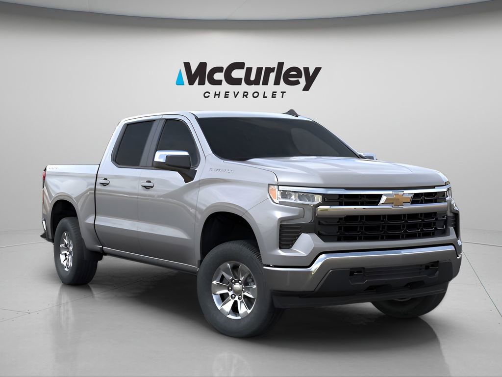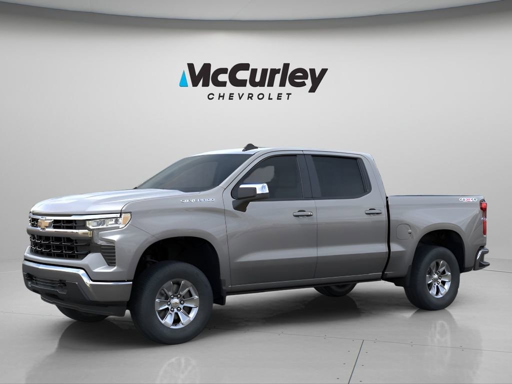 Sterling Gray Metallic 2025 Chevrolet Silverado 1500 LT LT1 4WD 8-Speed Automatic 2.7L I4 Turbocharged DOHC 16V LEV3-SULEV30 310hp 8-Speed Automatic, 4WD, Black Cloth, 10-Way Power Driver Seat w/Lumbar, 12.3 Multicolor Reconfigurable Digital Display, 120-Volt Bed Mounted Power Outlet, 120-Volt Interior Power Outlet, 3.42 Rear Axle Ratio, 4-Wheel Disc Brakes, 40/20/40 Front Split-Bench Seat, 6 Speakers, 6-Speaker Audio System, ABS brakes, Air Conditioning, All-Star Edition, Alloy wheels, AM/FM radio: SiriusXM with 360L, Apple CarPlay/Android Auto, Auto High-beam Headlights, Auto-Locking Rear Differential, Automatic Emergency Braking, Automatic temperature control, Bluetooth® For Phone, Brake assist, Bumpers: chrome, Chrome Mirror Caps, Cloth Seat Trim, Color-Keyed Carpeting Floor Covering, Compass, Convenience Package, Deep-Tinted Glass, Delay-off headlights, Driver door bin, Driver vanity mirror, Dual front impact airbags, Dual front side impact airbags, Dual Rear USB Ports (Charge Only), Dual-Zone Automatic Climate Control, Electric Rear-Window Defogger, Electronic Cruise Control, Electronic Stability Control, Emergency communication system: OnStar, Following Distance Indicator, Forward Collision Alert, Front anti-roll bar, Front Center Armrest w/Storage, Front dual zone A/C, Front Frame-Mounted Black Recovery Hooks, Front License Plate Kit, Front Pedestrian Braking, Front reading lights, Front wheel independent suspension, Fully automatic headlights, HD Rear Vision Camera, Heated door mirrors, Heated Driver & Front Outboard Passenger Seats, Heated front seats, Heated Steering Wheel, Heated steering wheel, Hitch Guidance, Illuminated entry, Integrated Trailer Brake Controller, IntelliBeam Automatic High Beam On/Off, Keyless Open & Start, Lane Keep Assist w/Lane Departure Warning, LED Cargo Area Lighting, Low tire pressure warning, Manual Tilt/Telescoping Steering Column, Occupant sensing airbag, OnStar Services Capable, Outside temperature display, Overhead airbag, Overhead console, Panic alarm, Passenger door bin, Passenger vanity mirror, Power door mirrors, Power driver seat, Power Front Windows w/Driver Express Up/Down, Power Front Windows w/Passenger Express Down, Power Rear Windows w/Express Down, Power steering, Power windows, Premium audio system: Chevrolet Infotainment 3 Premium, Radio data system, Radio: Chevrolet Infotainment 3 Premium System, Rear 60/40 Folding Bench Seat (Folds Up), Rear reading lights, Rear step bumper, Rear window defroster, Remote keyless entry, Remote Vehicle Starter System, Security system, SiriusXM w/360L Trial Subscription, Speed control, Speed-sensing steering, Split folding rear seat, Standard Suspension Package, Steering Wheel Audio Controls, Steering wheel mounted audio controls, Tachometer, Teen Driver, Telescoping steering wheel, Theft Deterrent System (Unauthorized Entry), Tilt steering wheel, Tire Pressure Monitoring System, Traction control, Trailering Package, Trip computer, Variably intermittent wipers, Voltmeter, Wheels: 18 x 8.5 Bright Silver Painted Aluminum, Wi-Fi Hot Spot Capable, Wrapped Steering Wheel, 8-Speed Automatic, 4WD, Black Cloth.