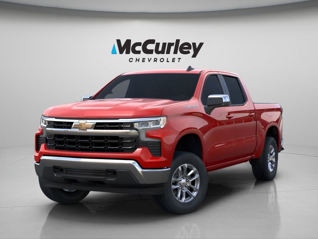 Red Hot 2025 Chevrolet Silverado 1500 LT 4WD 8-Speed Automatic 2.7L I4 Turbocharged DOHC 16V LEV3-SULEV30 310hp 8-Speed Automatic, 4WD, Black Cloth, 10-Way Power Driver Seat w/Lumbar, 12.3 Multicolor Reconfigurable Digital Display, 120-Volt Bed Mounted Power Outlet, 120-Volt Interior Power Outlet, 3.42 Rear Axle Ratio, 4-Wheel Disc Brakes, 40/20/40 Front Split-Bench Seat, 6 Speakers, 6-Speaker Audio System, ABS brakes, Air Conditioning, All-Star Edition, Alloy wheels, AM/FM radio: SiriusXM with 360L, Apple CarPlay/Android Auto, Auto High-beam Headlights, Auto-Locking Rear Differential, Automatic Emergency Braking, Automatic temperature control, Bluetooth® For Phone, Brake assist, Bumpers: chrome, Chrome Mirror Caps, Cloth Seat Trim, Color-Keyed Carpeting Floor Covering, Compass, Convenience Package, Deep-Tinted Glass, Delay-off headlights, Driver door bin, Driver vanity mirror, Dual front impact airbags, Dual front side impact airbags, Dual Rear USB Ports (Charge Only), Dual-Zone Automatic Climate Control, Electric Rear-Window Defogger, Electronic Cruise Control, Electronic Stability Control, Emergency communication system: OnStar, Following Distance Indicator, Forward Collision Alert, Front anti-roll bar, Front Center Armrest w/Storage, Front dual zone A/C, Front Frame-Mounted Black Recovery Hooks, Front License Plate Kit, Front Pedestrian Braking, Front reading lights, Front wheel independent suspension, Fully automatic headlights, HD Rear Vision Camera, Heated door mirrors, Heated Driver & Front Outboard Passenger Seats, Heated front seats, Heated Steering Wheel, Heated steering wheel, Hitch Guidance, Illuminated entry, Integrated Trailer Brake Controller, IntelliBeam Automatic High Beam On/Off, Keyless Open & Start, Lane Keep Assist w/Lane Departure Warning, LED Cargo Area Lighting, Low tire pressure warning, Manual Tilt/Telescoping Steering Column, Occupant sensing airbag, OnStar Services Capable, Outside temperature display, Overhead airbag, Overhead console, Panic alarm, Passenger door bin, Passenger vanity mirror, Power door mirrors, Power driver seat, Power Front Windows w/Driver Express Up/Down, Power Front Windows w/Passenger Express Down, Power Rear Windows w/Express Down, Power steering, Power windows, Premium audio system: Chevrolet Infotainment 3 Premium, Radio data system, Radio: Chevrolet Infotainment 3 Premium System, Rear 60/40 Folding Bench Seat (Folds Up), Rear reading lights, Rear step bumper, Rear window defroster, Remote keyless entry, Remote Vehicle Starter System, Security system, SiriusXM w/360L Trial Subscription, Speed control, Speed-sensing steering, Split folding rear seat, Standard Suspension Package, Steering Wheel Audio Controls, Steering wheel mounted audio controls, Tachometer, Teen Driver, Telescoping steering wheel, Theft Deterrent System (Unauthorized Entry), Tilt steering wheel, Tire Pressure Monitoring System, Traction control, Trailering Package, Trip computer, Variably intermittent wipers, Voltmeter, Wheels: 18 x 8.5 Bright Silver Painted Aluminum, Wi-Fi Hot Spot Capable, Wrapped Steering Wheel, 8-Speed Automatic, 4WD, Black Cloth.