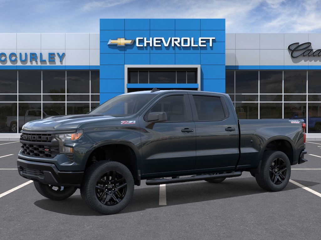 Introducing the 2026 Chevrolet Silverado 1500 Custom Trail Boss, the ultimate blend of power, style, and capability. This rugged crew cab features a striking cypress gray exterior that is both polished and bold, perfectly complemented by a sleek black interior designed for comfort and functionality. Under the hood, you'll find a robust 2.7L I4 turbocharged DOHC 16V engine, delivering an impressive 310 horsepower. This powerful engine pairs seamlessly with a resilient 4-wheel drive system, ensuring superior performance in all terrains-whether you're tackling off-road adventures or navigating urban landscapes. The standard box configuration offers ample cargo space, making it the perfect choice for both work and leisure. With its custom Trail Boss enhancements, this Silverado is equipped to handle any challenge while providing a smooth and confident driving experience. Explore the versatility and reliability that the Silverado 1500 Custom Trail Boss brings to your daily drives. Elevate your lifestyle with this remarkable vehicle, combining cutting-edge features with Chevrolet's legendary durability. Don't miss your chance to own this exceptional truck-ready to conquer your next journey with style.