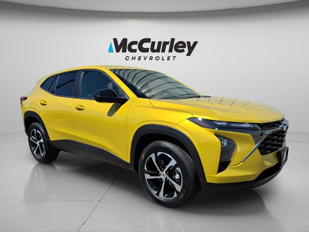 2025 Chevrolet Trax 1RS FWD 6-Speed Automatic 1.2L Ecotec Turbo DOHC DI w/VVT Nitro Yellow Metallic Driver Confidence Package, Lane Change Alert w/Side Blind Zone Alert, Preferred Equipment Group 1RS, Rear Cross-Traffic Alert, Rear Park Assist, 2-Way Adjustable Front Head Restraints, 3.50 Final Drive Axle Ratio, 4 Speakers, 4-Speaker Audio System Feature, 4-Way Manual Front Passenger Seat Adjuster, 4-Wheel Disc Brakes, 6-Way Manual Driver Seat Adjuster, ABS brakes, Air Conditioning, Alloy wheels, AM/FM radio: SiriusXM, Auto High-beam Headlights, Brake assist, Bumpers: body-color, Cloth Seat Trim, Compass, Delay-off headlights, Driver door bin, Driver vanity mirror, Dual front impact airbags, Dual front side impact airbags, Electronic Stability Control, Emergency communication system: OnStar One Essentials, Exterior Parking Camera Rear, Front anti-roll bar, Front Bucket Seats, Front Center Armrest, Front reading lights, Front wheel independent suspension, Fully automatic headlights, Heated door mirrors, Heated Driver & Front Passenger Seats, Heated front seats, Heated steering wheel, Illuminated entry, Leather steering wheel, Low tire pressure warning, Occupant sensing airbag, Outside temperature display, Overhead airbag, Overhead console, Panic alarm, Passenger door bin, Passenger vanity mirror, Power door mirrors, Power steering, Power windows, Premium audio system: Chevrolet Infotainment 3, Radio data system, Radio: Chevrolet Infotainment 3 System w/AM/FM, Rear window defroster, Rear window wiper, Remote keyless entry, Security system, SiriusXM Trial Subscription, Speed control, Split folding rear seat, Spoiler, Sport steering wheel, Steering wheel mounted audio controls, Tachometer, Telescoping steering wheel, Tilt steering wheel, Traction control, Trip computer, Variably intermittent wipers, Wheels: 18 Black-Painted Machined Aluminum, Driver Confidence Package, Lane Change Alert w/Side Blind Zone Alert, Preferred Equipment Group 1RS, Rear Cross-Traffic Alert, Rear Park Assist.
