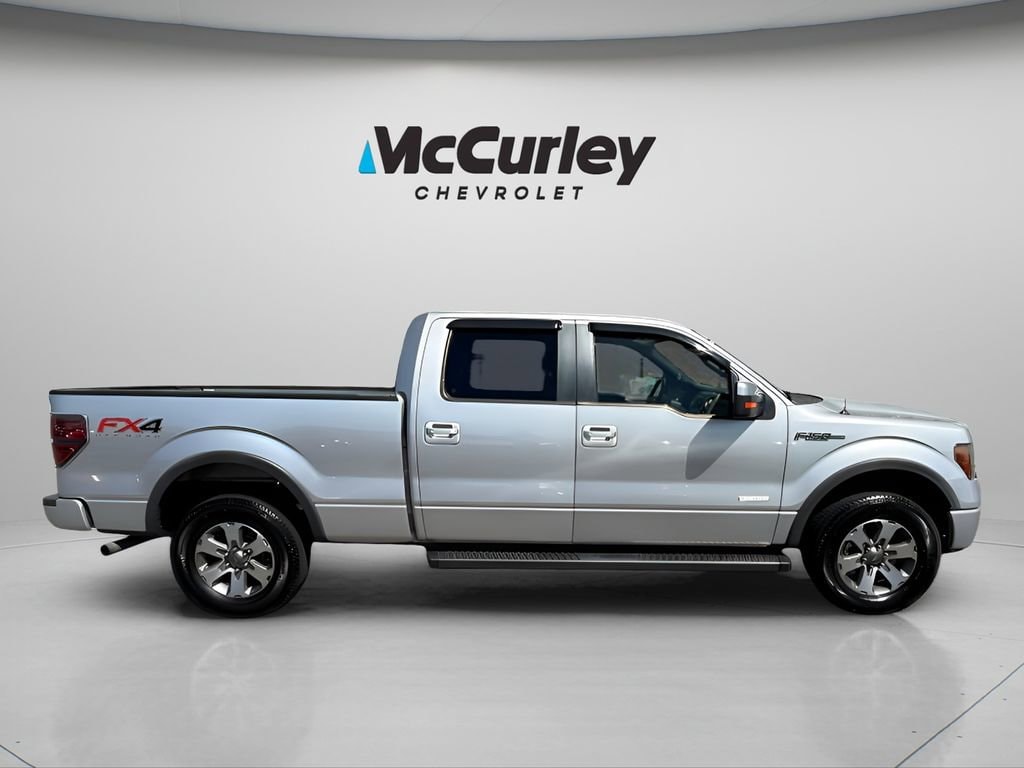 2013 Ford F-150 FX4 Certified.Priced below KBB Fair Purchase Price!2013 Ford F-150 FX4 4WD 6-Speed Automatic Electronic 3.5L V6 Ingot Silver McCurley Certified Certified, 4WD, 18 Machined-Aluminum Wheels, 4 Speakers, 4-Wheel Disc Brakes, 4.2 LCD Productivity Screen in Instrument Cluster, ABS brakes, Air Conditioning, Alloy wheels, AM/FM radio: SiriusXM, Auto-dimming Rear-View mirror, Bumpers: body-color, CD player, Cloth Bucket Seats, Compass, Delay-off headlights, Driver door bin, Driver vanity mirror, Dual front impact airbags, Dual front side impact airbags, Electronic Locking w/3.55 Axle Ratio, Electronic Stability Control, Equipment Group 401A Mid, Front anti-roll bar, Front Bucket Seats, Front Center Armrest, Front fog lights, Front License Plate Bracket, Front reading lights, Front wheel independent suspension, Fully automatic headlights, GVWR: 7,350 lbs Payload Package, Illuminated entry, Leather Shift Knob, Leather steering wheel, Low tire pressure warning, Occupant sensing airbag, Outside temperature display, Overhead airbag, Overhead console, Panic alarm, Passenger door bin, Passenger vanity mirror, Power door mirrors, Power driver seat, Power steering, Power windows, Radio data system, Radio: AM/FM Stereo/Clock/Single-CD, Rear reading lights, Rear step bumper, Rear window defroster, Remote keyless entry, Security system, SiriusXM Satellite Radio, Speed control, Speed-sensing steering, Split folding rear seat, Steering wheel mounted audio controls, SYNC MyFord, Tachometer, Tailgate Step, Telescoping steering wheel, Tilt steering wheel, Traction control, Trip computer, Variably intermittent wipers, 4WD.Certification Program Details: This vehicle is McCurley Certified and includes: -1 Month / 1000 Mile Powertrain Warranty* -Engine, Drive Assembly, Transmission, Seals and Gaskets Coverage* -102pt Mechanical & Appearance Inspection -McCurley Advantage- Repel Shield, Loyalty Rewards, Owner App -$0 Warranty Deductible -7 Day / 500 Mile Exchange Policy* -Certified Value Market Based Pricing *See dealer for complete coverage details. Coverage may vary by vehicle and mileage.Odometer is 28218 miles below market average!Awards:* 2013 KBB.com Brand Image Awards