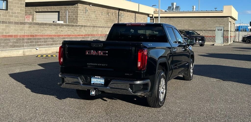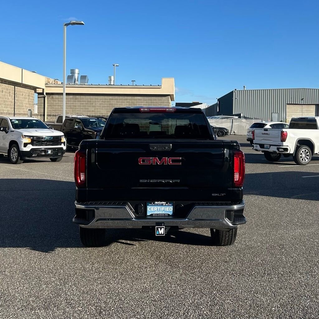 Recent Arrival! 2024 GMC Sierra 1500 SLT Certified.Priced below KBB Fair Purchase Price!2024 GMC Sierra 1500 SLT 4WD 10-Speed Automatic EcoTec3 5.3L V8 Onyx Black GMC Certified Pre-Owned Certified, 10-Speed Automatic, 4WD, Black Leather, 120-Volt Bed Mounted Power Outlet, 120-Volt Interior Power Outlet, 170 Amp Alternator, 2 Charge/Data USB Ports, 2 Type-C Charge-Only Rear USB Ports, 6-Speaker Audio System Feature, Auto-Locking Rear Differential, Auxiliary External Transmission Oil Cooler, Chrome Header & Chrome Grille Insert Bars, Color-Keyed Carpeting Floor Covering, Deep-Tinted Glass, Electric Rear-Window Defogger, Front Frame-Mounted Black Recovery Hooks, Front Rain-Sensing Wipers, GMC Connected Access Capable, HD Rear Vision Camera, Hitch Guidance, Keyless Open & Start, LED Cargo Area Lighting, Manual Tilt-Wheel & Telescoping Steering Column, OnStar & GMC Connected Services Capable, Perimeter Lighting, Power Door Locks, Power Front Passenger Windows w/Express Up/Down, Power Front Windows w/Driver Express Up/Down, Power Rear Windows w/Express Down, Preferred Equipment Group 4SA, Push Button Start, Rear Wheelhouse Liners, Remote Vehicle Starter System, SiriusXM w/360L, Standard Suspension Package, Steering Wheel Audio Controls, Theft Deterrent System (Unauthorized Entry), Trailering Package, Wi-Fi Hotspot Capable, 10-Way Power Driver Seat Adjuster w/Lumbar, 10-Way Power Passenger Seat Adjuster w/Lumbar, 3.23 Rear Axle Ratio, 4-Wheel Disc Brakes, 6 Speakers, ABS brakes, Air Conditioning, Alloy wheels, AM/FM radio: SiriusXM with 360L, Apple CarPlay/Android Auto, Auto High-beam Headlights, Auto-dimming door mirrors, Auto-dimming Rear-View mirror, Automatic Emergency Braking, Automatic temperature control, Brake assist, Buckle to Drive, Bumpers: chrome, Compass, Delay-off headlights, Deleted 3 Years of OnStar Remote Access, Driver door bin, Driver Memory, Driver vanity mirror, Dual front impact airbags, Dual front side impact airbags, Electronic Stability Control, Following Distance Indicator, Forward Collision Alert, Front 40/20/40 Split-Bench Seat, Front anti-roll bar, Front Center Armrest w/Storage, Front dual zone A/C, Front fog lights, Front License Plate Kit, Front Pedestrian Braking, Front reading lights, Front wheel independent suspension, Fully automatic headlights, Heated door mirrors, Heated Driver & Front Outboard Passenger Seating, Heated front seats, Heated steering wheel, Illuminated entry, IntelliBeam Automatic High Beam On/Off, Lane Keep Assist w/Lane Departure Warning, Low tire pressure warning, Memory seat, Navigation System, Occupant sensing airbag, Outside temperature display, Overhead airbag, Overhead console, Panic alarm, Passenger door bin, Passenger vanity mirror, Perf Leather-Appointed Front Outboard Seat Trim, Power door mirrors, Power driver seat, Power passenger seat, Power steering, Power windows, Premium audio system: GMC Infotainment System, Radio data system, Radio: Premium GMC Infotainment Audio System, Rain sensing wipers, Rear reading lights, Rear seat center armrest, Rear step bumper, Rear window defroster, Remote keyless entry, Security system, Speed control, Speed-sensing steering, Split folding rear seat, Steering wheel mounted audio controls, Tachometer, Telescoping steering wheel, Tilt steering wheel, Traction control, Trip computer, Variably intermittent wipers, Voltmeter, Wheels: 18 x 8.5 6-Spoke Machined Aluminum, Wireless Apple CarPlay/Wireless Android Auto, 10-Speed Automatic, 4WD, Black Leather, 120-Volt Bed Mounted Power Outlet, 120-Volt Interior Power Outlet, 170 Amp Alternator, 2 Charge/Data USB Ports, 2 Type-C Charge-Only Rear USB Ports, 6-Speaker Audio System Feature, Auto-Locking Rear Differential, Auxiliary External Transmission Oil Cooler, Chrome Header & Chrome Grille Insert Bars, Color-Keyed Carpeting Floor Covering, Deep-Tinted Glass, Electric Rear-Window Defogger, Front Frame-Mounted Black Recovery Hooks, Front Rain-Sensing Wipers, GMC Connected Acces