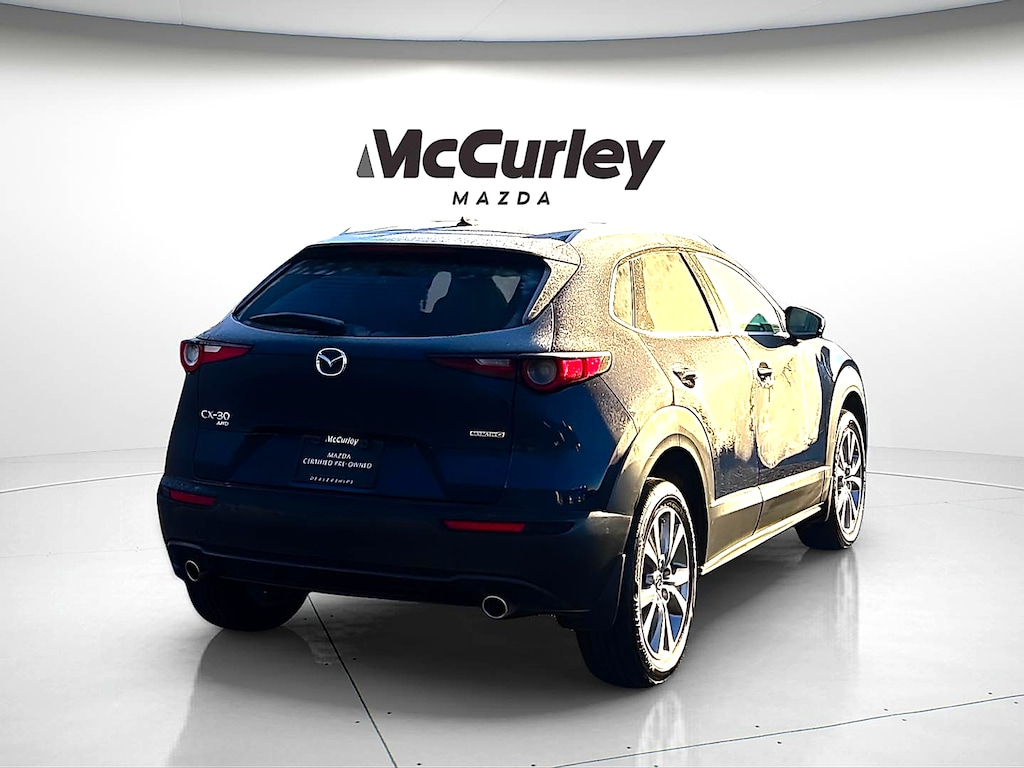 Introducing the 2025 Mazda CX-30 2.5 S Premium Package, a sophisticated blend of performance and style. This certified pre-owned vehicle showcases a striking Deep Crystal Blue Mica exterior that catches the eye from every angle, perfectly complemented by a sleek black interior that exudes modern elegance. Under the hood, the powerful 2.5L 4-cylinder engine delivers a perfect balance of efficiency and spirited performance, ensuring a confident driving experience. Equipped with all-wheel drive (AWD), the CX-30 provides exceptional handling and stability, making it an ideal choice for all weather conditions. The Premium Package enhances your journey with a host of features designed for comfort and convenience. Enjoy the latest technology with advanced infotainment systems and premium audio, alongside luxurious touches that elevate your drive. With its blend of versatility, sporty design, and practicality, the 2025 Mazda CX-30 2.5 S Premium Package is the perfect vehicle for those who appreciate quality and style. Don't miss the opportunity to own this exceptional SUV-experience the drive of your life today!