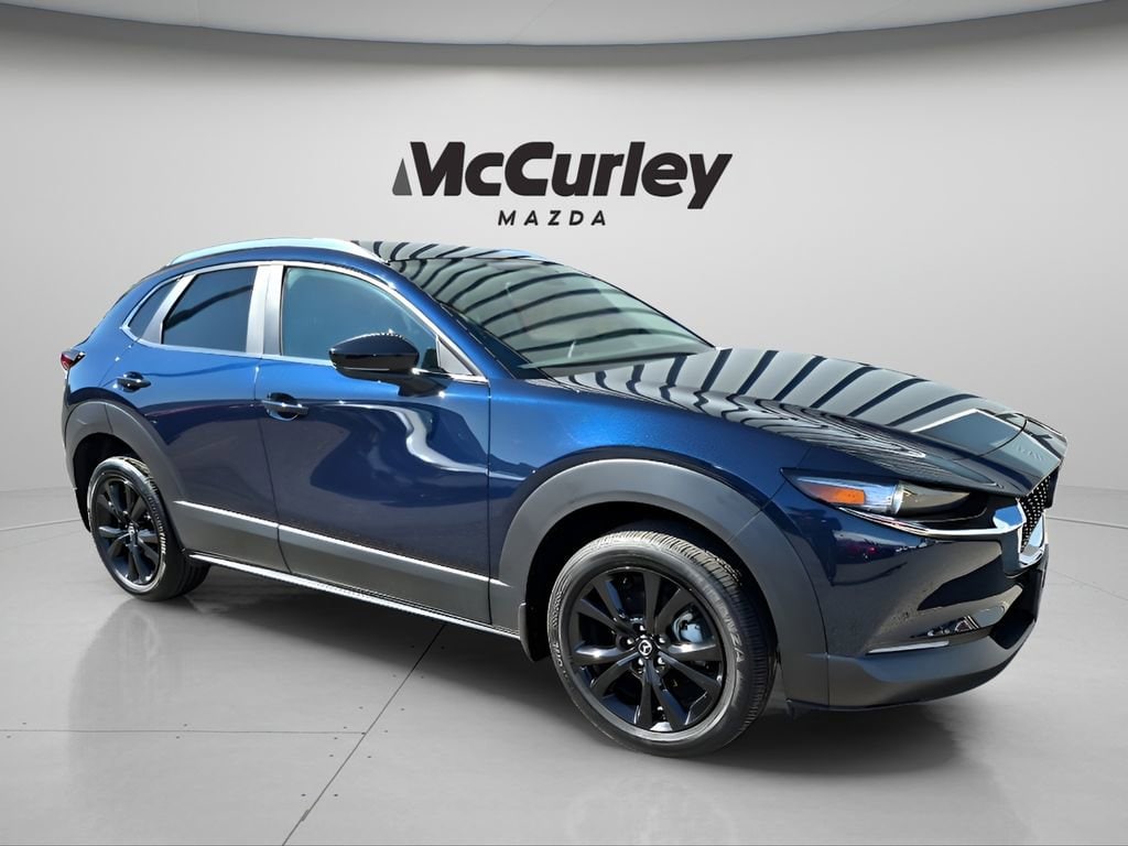 2025 Mazda CX-30 2.5 S Select Sport AWD 6-Speed Automatic SKYACTIV® 2.5L 4-Cylinder DOHC 16V Deep Crystal Blue Mica Mazda Certified Pre-Owned Certified, 4-Wheel Disc Brakes, 6 Speakers, ABS brakes, Air Conditioning, Alloy wheels, AM/FM radio, AppLink/Apple CarPlay and Android Auto, Auto High-beam Headlights, Automatic temperature control, Brake assist, Bumpers: body-color, Compass, Delay-off headlights, Driver door bin, Driver vanity mirror, Dual front impact airbags, Dual front side impact airbags, Electronic Stability Control, Emergency communication system: Mazda Connected Services (3-year trial subscription included), Exterior Parking Camera Rear, Front & Rear Splash Guards, Front anti-roll bar, Front Bucket Seats, Front Center Armrest, Front dual zone A/C, Front reading lights, Front wheel independent suspension, Fully automatic headlights, Heated door mirrors, High Wall All-Weather Floor Mats, Illuminated entry, Knee airbag, Leather Shift Knob, Leather steering wheel, Leatherette Seat Trim, Low tire pressure warning, MAZDA CONNECT Infotainment System, Occupant sensing airbag, Outside temperature display, Overhead airbag, Overhead console, Panic alarm, Passenger door bin, Passenger vanity mirror, Power door mirrors, Power steering, Power windows, Radio data system, Radio: AM/FM Audio System, Rain sensing wipers, Rear seat center armrest, Rear side impact airbag, Rear window defroster, Rear window wiper, Remote keyless entry, Speed control, Speed-sensing steering, Split folding rear seat, Spoiler, Stainless Steel Rear Bumper Guard, Steering wheel mounted audio controls, Tachometer, Telescoping steering wheel, Tilt steering wheel, Traction control, Trip computer, Turn signal indicator mirrors, Variably intermittent wipers, Wheels: 18 x 7J Aluminum Alloy.