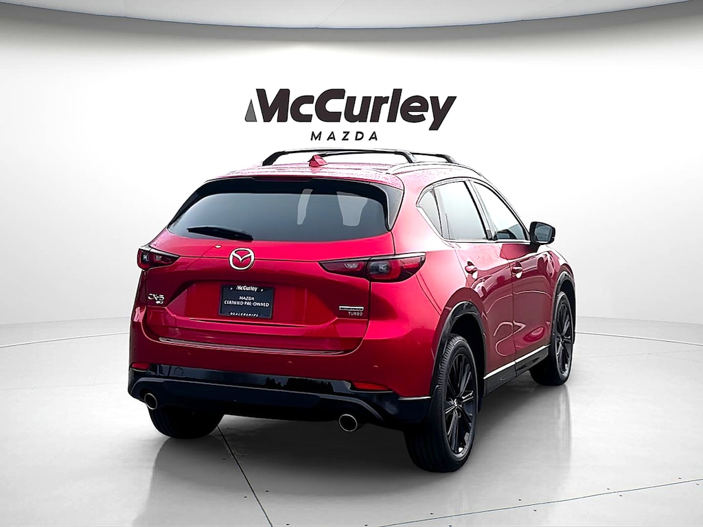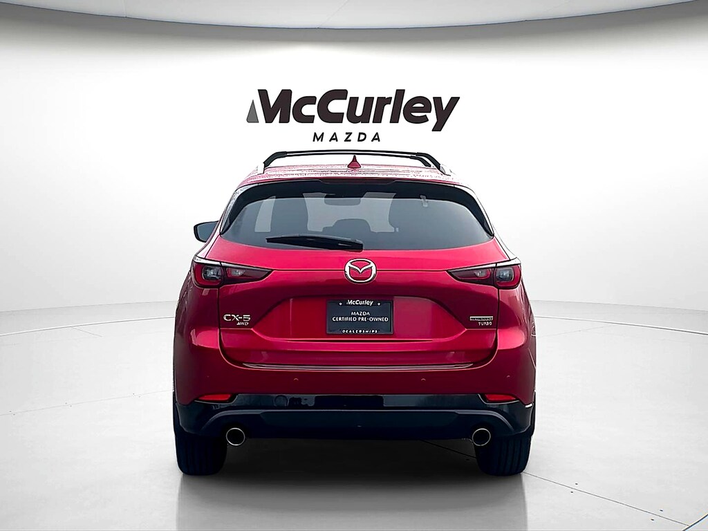 Introducing the 2025 Mazda CX-5 2.5 Turbo Premium Package, an exceptional blend of style, performance, and versatility. Finished in a striking Soul Red Metallic exterior, this certified pre-owned SUV is designed to turn heads while providing a comfortable and upscale driving experience. Under the hood, the CX-5 boasts a powerful 2.5L 4-cylinder turbocharged engine, delivering an exhilarating ride with impressive fuel efficiency. With its all-wheel drive (AWD) system, you'll enjoy enhanced traction and stability, whether navigating city streets or exploring off the beaten path. The spacious black interior hosts a range of premium features, ensuring every journey is enjoyable. Equipped with advanced technology and safety options, the CX-5 prioritizes your comfort and peace of mind. From the luxurious seating to the intuitive infotainment system, every detail reflects Mazda's commitment to quality and sophistication. Don't miss this opportunity to own a remarkable vehicle that seamlessly blends performance with practicality. Experience the 2025 Mazda CX-5 2.5 Turbo Premium Package and redefine your driving adventures today!