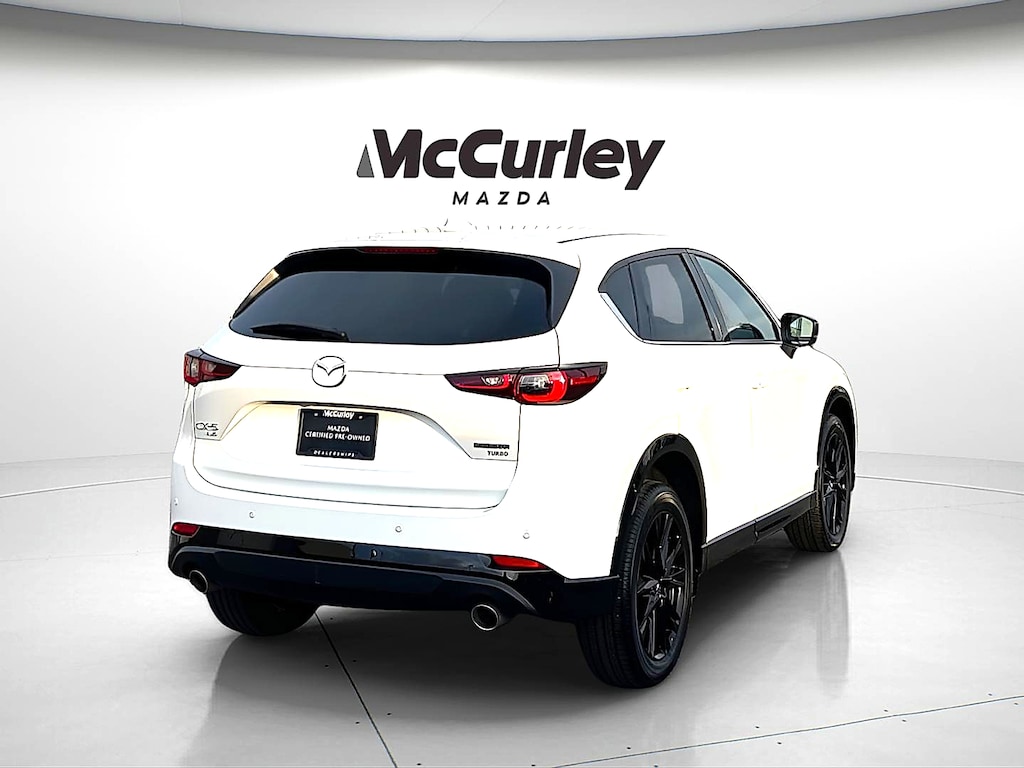 Introducing the 2025 Mazda CX-5 2.5 Carbon Turbo AWD, a remarkable blend of style, performance, and practicality. This certified pre-owned vehicle features an eye-catching Rhodium White Metallic exterior, perfectly complemented by a sophisticated black interior. Under the hood, you'll find a robust 2.5L 4-cylinder engine that delivers impressive power and efficiency, ensuring a thrilling drive whether navigating city streets or enjoying a weekend getaway. The advanced all-wheel drive system enhances traction and stability, providing confidence in various driving conditions. Inside the CX-5, you'll experience a thoughtfully designed cabin adorned with premium materials and modern technology. Comfort and convenience are prioritized, making every journey enjoyable for you and your passengers. With its sleek design and exceptional performance, the 2025 Mazda CX-5 2.5 Carbon Turbo AWD stands out as a limited availability model that combines sporty aesthetics with reliability. Don't miss the opportunity to own this exceptional vehicle that perfectly embodies Mazda's commitment to driving pleasure and innovation.