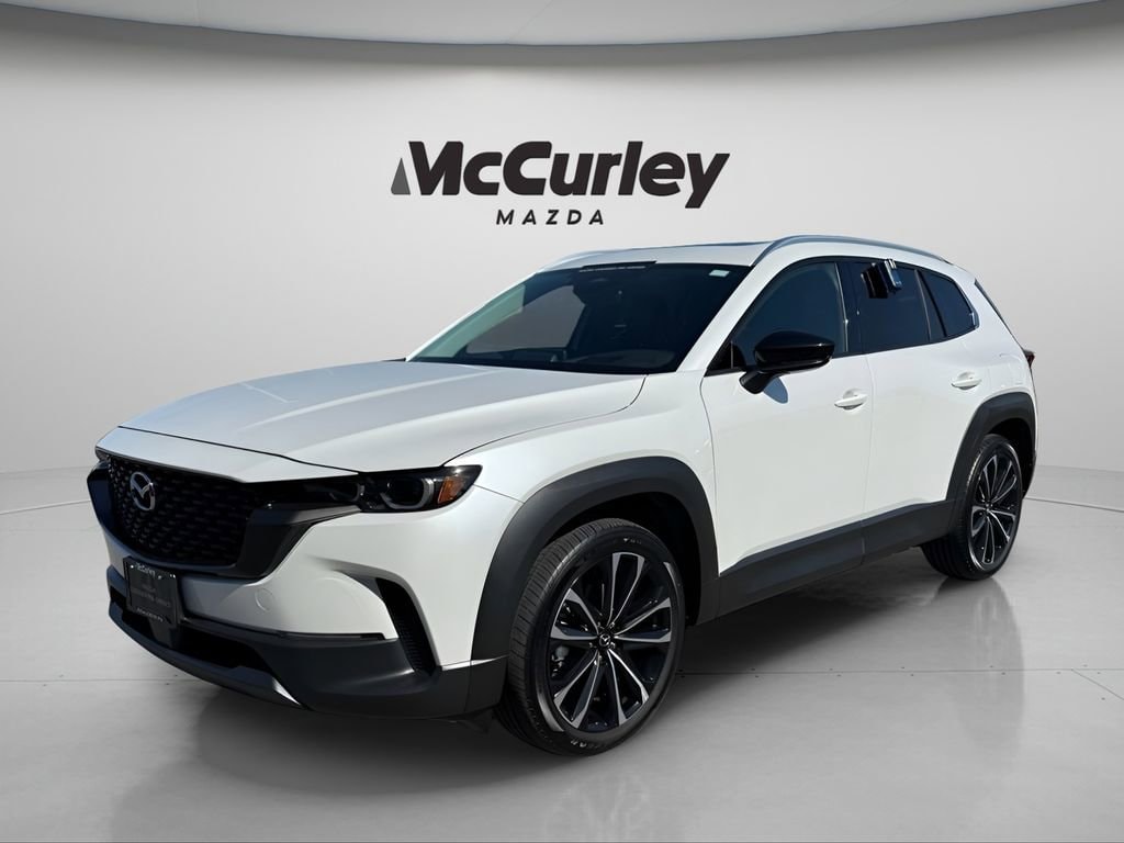 2025 Mazda CX-50 2.5 S Premium Plus Package AWD 6-Speed Automatic SKYACTIV® 2.5L 4-Cylinder DOHC 16V Wind Chill Pearl Mazda Certified Pre-Owned Certified, 12 Speakers, 20 x 8J Aluminum Alloy Wheels, 4-Wheel Disc Brakes, ABS brakes, Air Conditioning, Alloy wheels, AM/FM radio: SiriusXM, AppLink/Apple CarPlay and Android Auto, Auto High-beam Headlights, Auto-dimming Rear-View mirror, Automatic temperature control, Brake assist, Bumpers: body-color, Carpet Cargo Mat, Delay-off headlights, Driver door bin, Driver vanity mirror, Dual front impact airbags, Dual front side impact airbags, E911 Automatic Emergency Notification, Electronic Stability Control, Emergency communication system: MAZDA CONNECT, Exterior Parking Camera Rear, Front anti-roll bar, Front Bucket Seats, Front Center Armrest, Front dual zone A/C, Front reading lights, Front wheel independent suspension, Fully automatic headlights, Garage door transmitter: HomeLink, Heads-Up Display, Heated & Ventilated Front Bucket Seats, Heated door mirrors, Heated front seats, Illuminated entry, Infotainment System Voice Command, Knee airbag, Leather Seat Trim, Leather Shift Knob, Leather steering wheel, Low tire pressure warning, Memory seat, Multifunction Commander Control, Occupant sensing airbag, Outside temperature display, Overhead airbag, Overhead console, Panic alarm, Passenger door bin, Passenger vanity mirror, Power door mirrors, Power driver seat, Power Liftgate, Power moonroof, Power passenger seat, Power steering, Power windows, Radio Broadcast Data System Program Information, Radio data system, Radio: AM/FM/HD Audio System, Rain sensing wipers, Rear seat center armrest, Rear window defroster, Rear window wiper, Remote keyless entry, SMS Text Msg Audio Delivery & Reply, Speed control, Speed-sensing steering, Split folding rear seat, Spoiler, Steering wheel mounted audio controls, Tachometer, Telescoping steering wheel, Tilt steering wheel, Traction control, Trip computer, Turn signal indicator mirrors, Variably intermittent wipers, Ventilated front seats, Wind Chill Pearl Paint Charge.