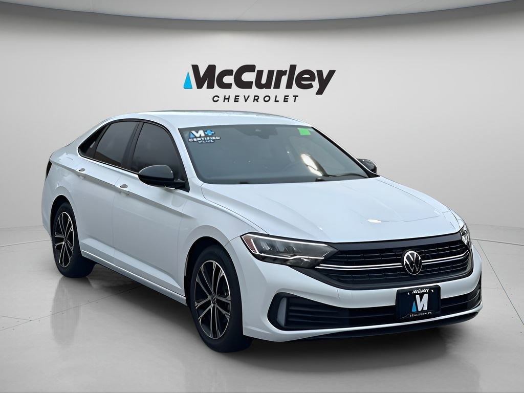 2022 Volkswagen Jetta 1.5T Sport FWD 8-Speed Automatic with Tiptronic 1.5L I-4 DI DOHC Turbocharged White McCurley Certified + Certified, Titan Black w/Cloth Seat Trim, 4 Speakers, 4-Wheel Disc Brakes, ABS brakes, Air Conditioning, Alloy wheels, AM/FM radio, Brake assist, Bumpers: body-color, Cloth Seat Trim, Delay-off headlights, Driver door bin, Driver vanity mirror, Dual front impact airbags, Dual front side impact airbags, Electronic Stability Control, Emergency communication system: Car-Net, Exterior Parking Camera Rear, Front anti-roll bar, Front Bucket Seats, Front Center Armrest, Front Comfort Seats, Front wheel independent suspension, Fully automatic headlights, Heated door mirrors, Illuminated entry, Low tire pressure warning, Occupant sensing airbag, Outside temperature display, Overhead airbag, Overhead console, Panic alarm, Passenger door bin, Passenger vanity mirror, Power door mirrors, Power steering, Power windows, Radio data system, Radio: MIB3 Composition Color w/6.5 Touchscreen, Rear anti-roll bar, Rear reading lights, Rear seat center armrest, Rear window defroster, Remote keyless entry, Speed control, Speed-sensing steering, Split folding rear seat, Steering wheel mounted audio controls, Tachometer, Telescoping steering wheel, Tilt steering wheel, Traction control, Trip computer, Variably intermittent wipers, Wheels: 17 2-Tone Machined Alloy, Titan Black w/Cloth Seat Trim.